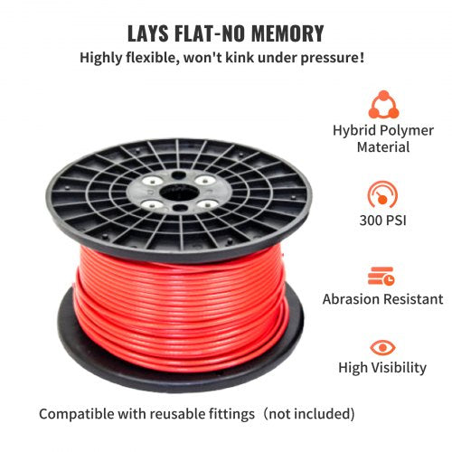 Hose Weight: 19 kg/42 lbs,Hose Size: 1/2"x250'/12.7 mmx76.2 m,Work Pressure: 300PSI,Hose Material: PVC and Rubber,Temp Range: -40-150 °F/-40-65 ℃
