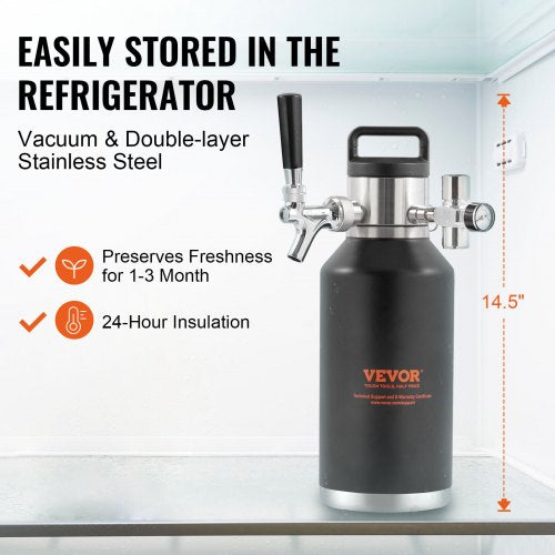 Beer Growler Tap System, 64Oz 1.89L Mini Keg, 304 Stainless Steel Pressurized Beer Growler, Keg Growler with Pressure Display, CO2 Regulator Faucet, Leak-Proof Ring For Draft Homebrew Craft Beer