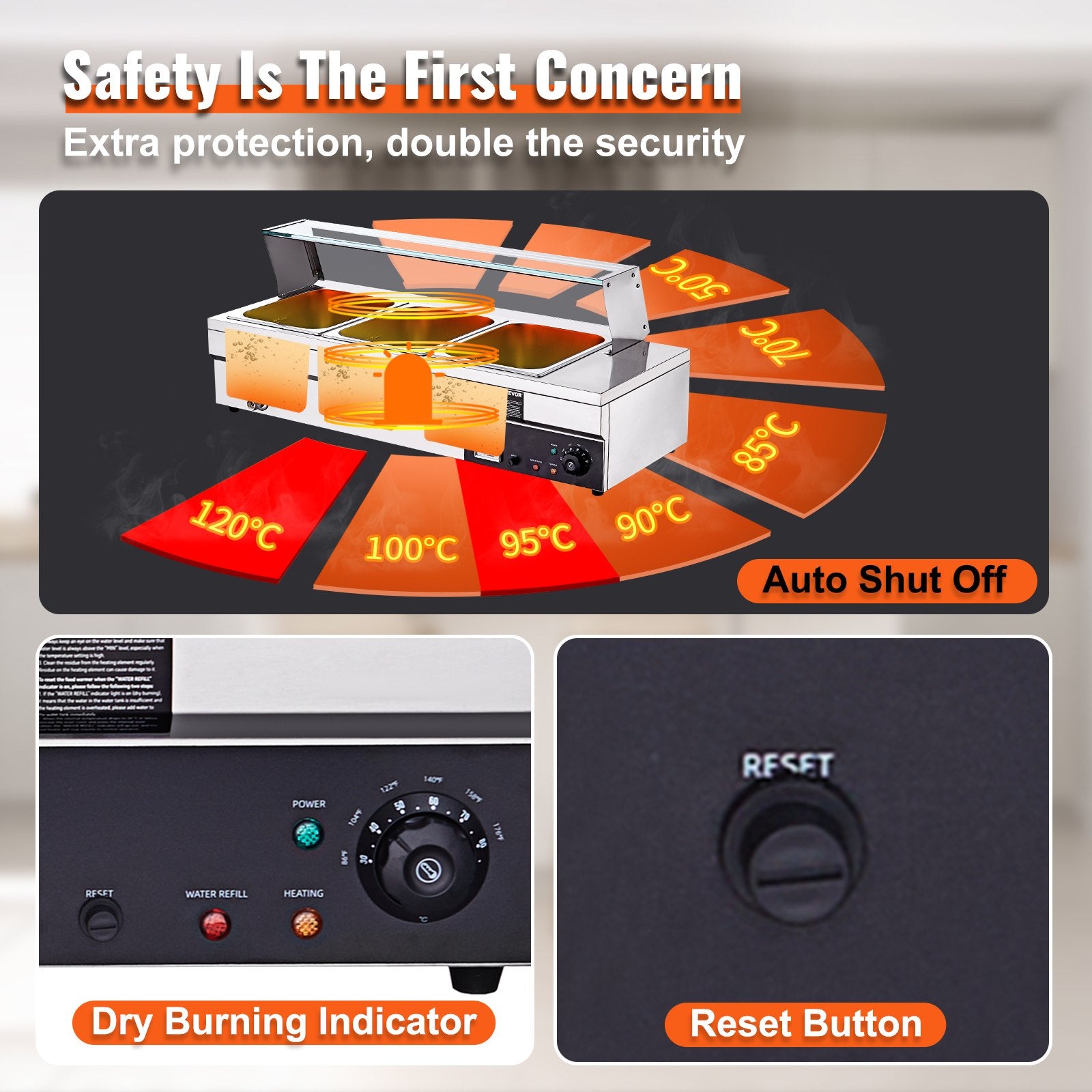 Commercial Electric Food Warmer Countertop Buffet 3*12Qt with Glass Shield