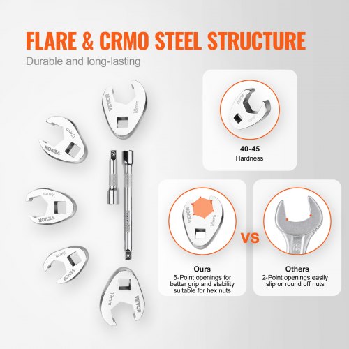 Crowfoot Wrench Set, 3/8" Drive 24-Piece Crows Foot Wrench Set with 2 Extension Bars and EVA Tool Organizer, SAE 3/8"-1" and Metric 10-22 mm, CRMO Steel and Mirror Chrome Finish