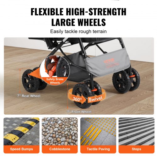 Rear Wheel Size: 7",Color: Black+ Grey,Mesh Window Material: Nylon,Wheel Material: EVA,Bottom Plate Material for Basket: Fiberboard,Weight Capacity: 44 lbs/20kg,Front Wheel Size: 7",Brake Type: Single-wheel brake (rear wheel),Item Model Number: DTC-608,Product Weight: 6kg/13.221 lbs,Style: Standard - 4 Wheels (Front Double, Rear Double),Frame Material: Alloy Pipe,Fabric Material: 600D Oxford Fabric