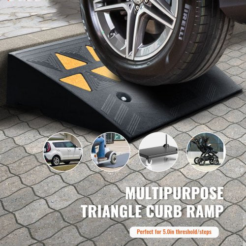 Rubber Curb Ramp 2 Pack, 5" Rise Height Heavy-Duty 33069 lbs/15 T Capacity Threshold Ramps, Driveway Ramps with Stable Grid Structure for Cars, Wheelchairs, Bikes, Motorcycles